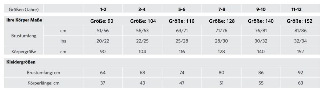 Die Maßtabellen zur Größenermittlung sind bei jedem Artikel hinterlegt.